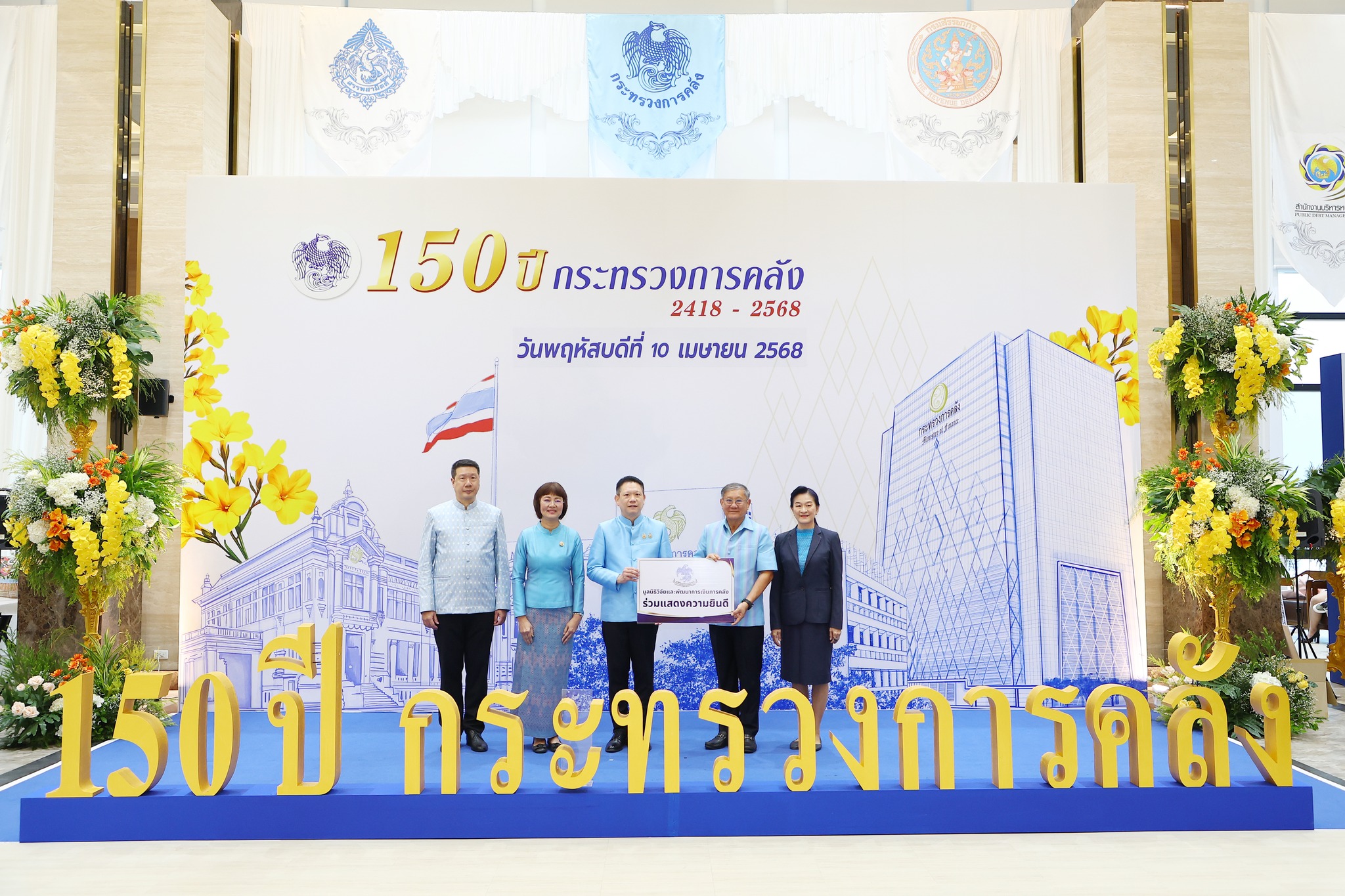 เมื่อวันพฤหัสบดีที่ 10 เมษายน 2568 มูลนิธิวิจัยและพัฒนาการเงินการคลัง โดยนายมนัส แจ่มเวหา ประธานกรรมการมูลนิธิฯ และนางวาสนา บรรลุผล ผู้จัดการมูลนิธิฯ ร่วมแสดงความยินดีเนื่องในโอกาสวันคล้ายวันสถาปนากระทรวงการคลัง ครบรอบ 150 ปี ณ ห้องประชุม ชั้น 21 อาคาร 150 ปี กระทรวงการคลัง