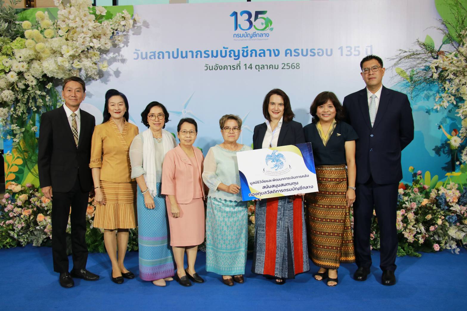 วันอังคารที่ 14 ตุลาคม 2568 มูลนิธิวิจัยและพัฒนาการเงินการคลัง โดยนางสาวพรวิลัย เดชอมรชัย รองประธานกรรมการมูลนิธิฯ นางสาวอรนุช ไวนุสิทธิ์ กรรมการมูลนิธิฯ นางญาณี แสงศรีจันทร์ กรรมการมูลนิธิฯ นายศุภมิตร เตชะมนตรีกุล ที่ปรึกษามูลนิธิฯ และนางวาสนา บรรลุผล ผู้จัดการมูลนิธิฯ ร่วมสนับสนุนสมทบทุน จำนวน 100,000 บาท เข้ากองทุนสวัสดิการกรมบัญชีกลาง เนื่องในโอกาสวันสถาปนากรมบัญชีกลางครบรอบ 135 ปี